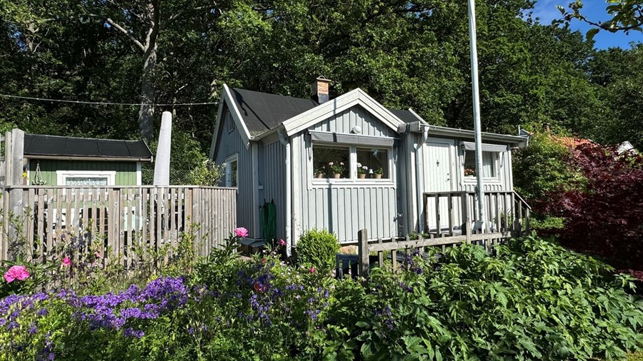 Vid stugans gavel hittar du en altan, byggd 2018, som erbjuder ett skyddat västerläge och låter dig njuta av solen till sena kvällen. Förvaring är inget problem med en praktisk friggebod för trädgårdsverktyg och möbler. Baksidan av stugan bjuder på en skyddad uteplats med rogivande utsikt mot skogen.