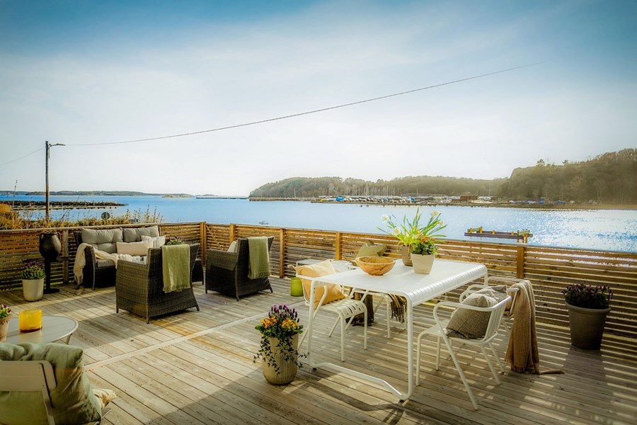 • Altandörr med utgång till en underbar altan på ca 38 kvm. Här har man ett underbart läge med fri utsikt mot havet. Gott om plats för utemöbler och grillen.